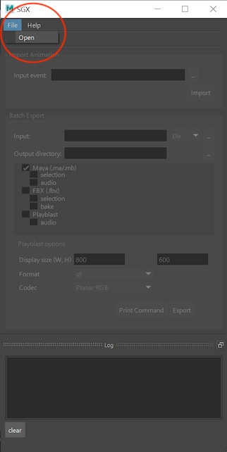 The SGX Maya plugin provides operations for importing SGX events into Maya and performing batch conversion into other formats.