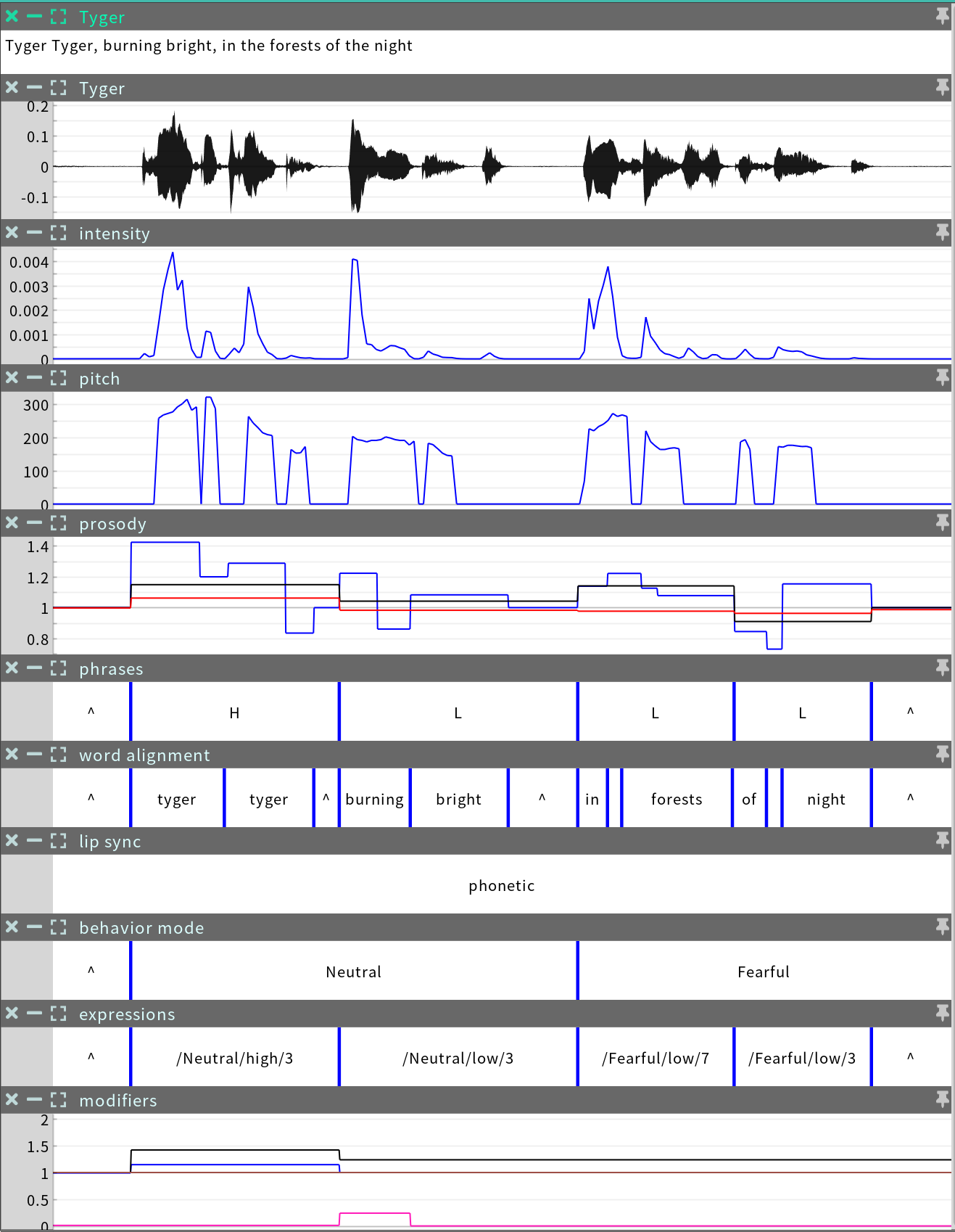 All of the sequences in an event provide some representation of the audio track, and exist on the audio timeline (with the exception of the transcript which is not a time series). Events are a closed binary format, but can be viewed and edited in SGX Director, where sequences appear as stacked tiers: