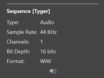 When an Audio sequence is selected, the Sequence display in the Inspector will show this layout: