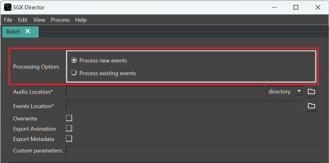 [Events Location]は新しく作成されたイベントの保存先となるディレクトリ、または処理対象のイベントがすでに保存されているディレクトリです(処理モードによって異なります)。