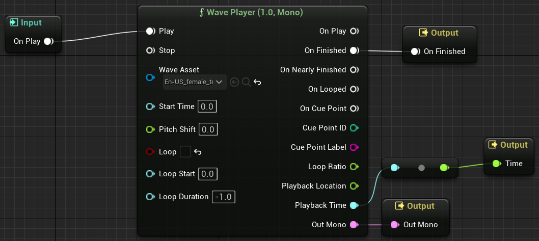 这里我们使用的是 MetaSounds 音频系统。也可以使用常规的 SoundWave。请参阅示例项目了解这两种实现方式。