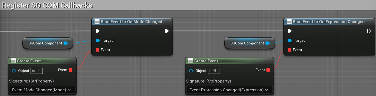 针对模式更改时和表情更改时回调,创建自定义 events。这些自定义 events 应使用字符串作为输入,因此请务必添加该字符串。