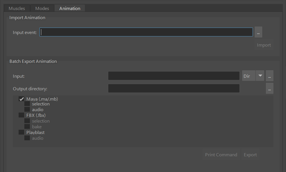 在选项卡的导入动画部分,您可以选择一个 event 文件并将其动画导入到当前 Maya 场景中。