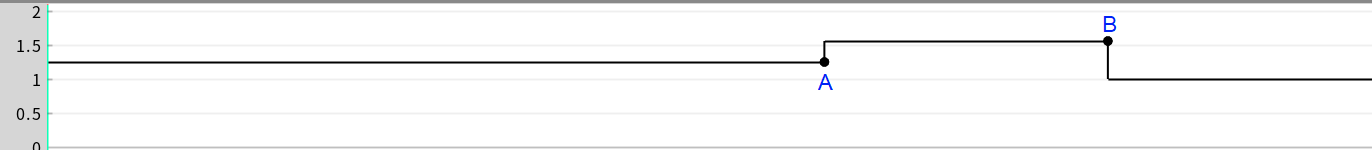 对于恒定插值,数据点 A 的值设置为以 A 为终点的时间区间的值,而数据点 B 的值设置为以 B 为终点的时间区间的值。
