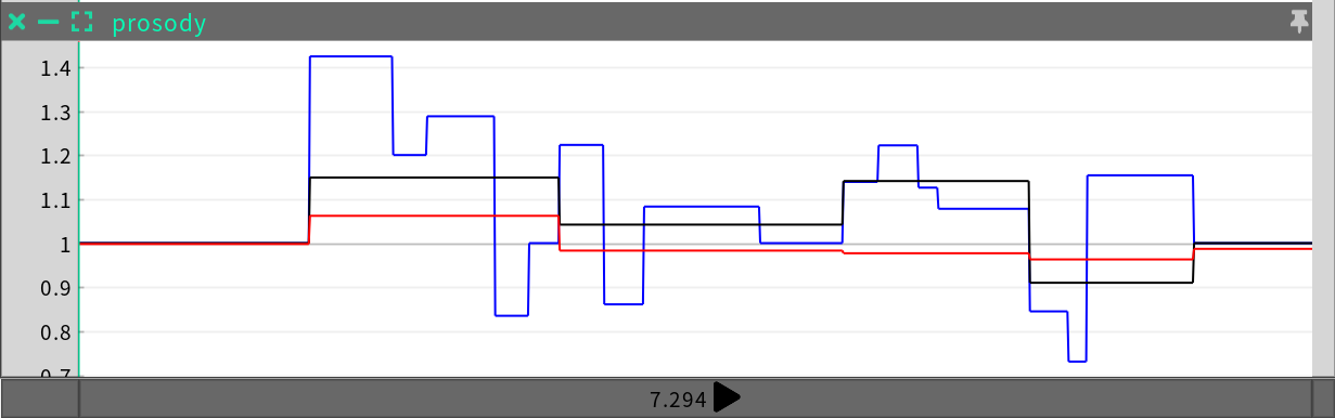 不规则时间序列 (ITS) 包含不规则采样的多通道数据,并带有插值函数。例如,下面是一个韵律的示例,它是一个包含三个通道的 ITS:音节重音、短语重音和短语速度。
